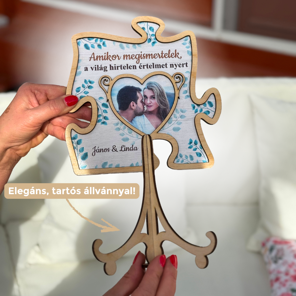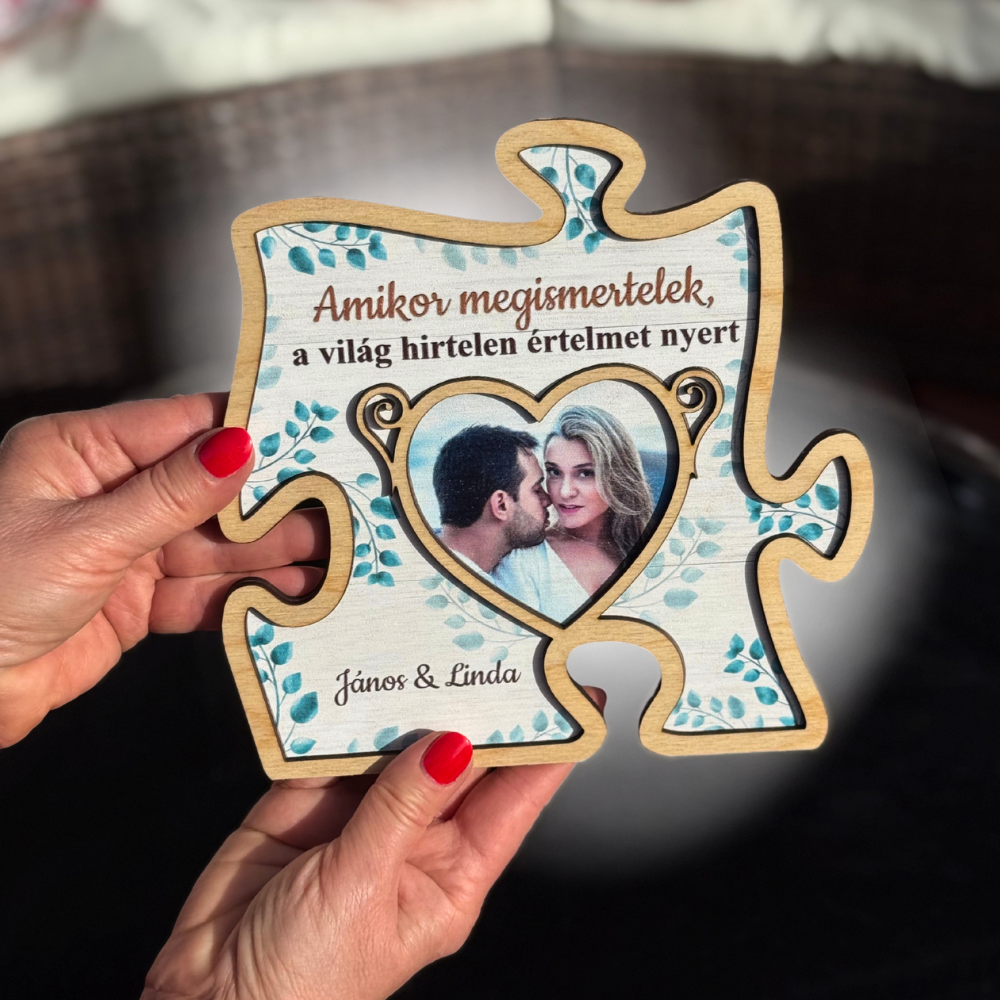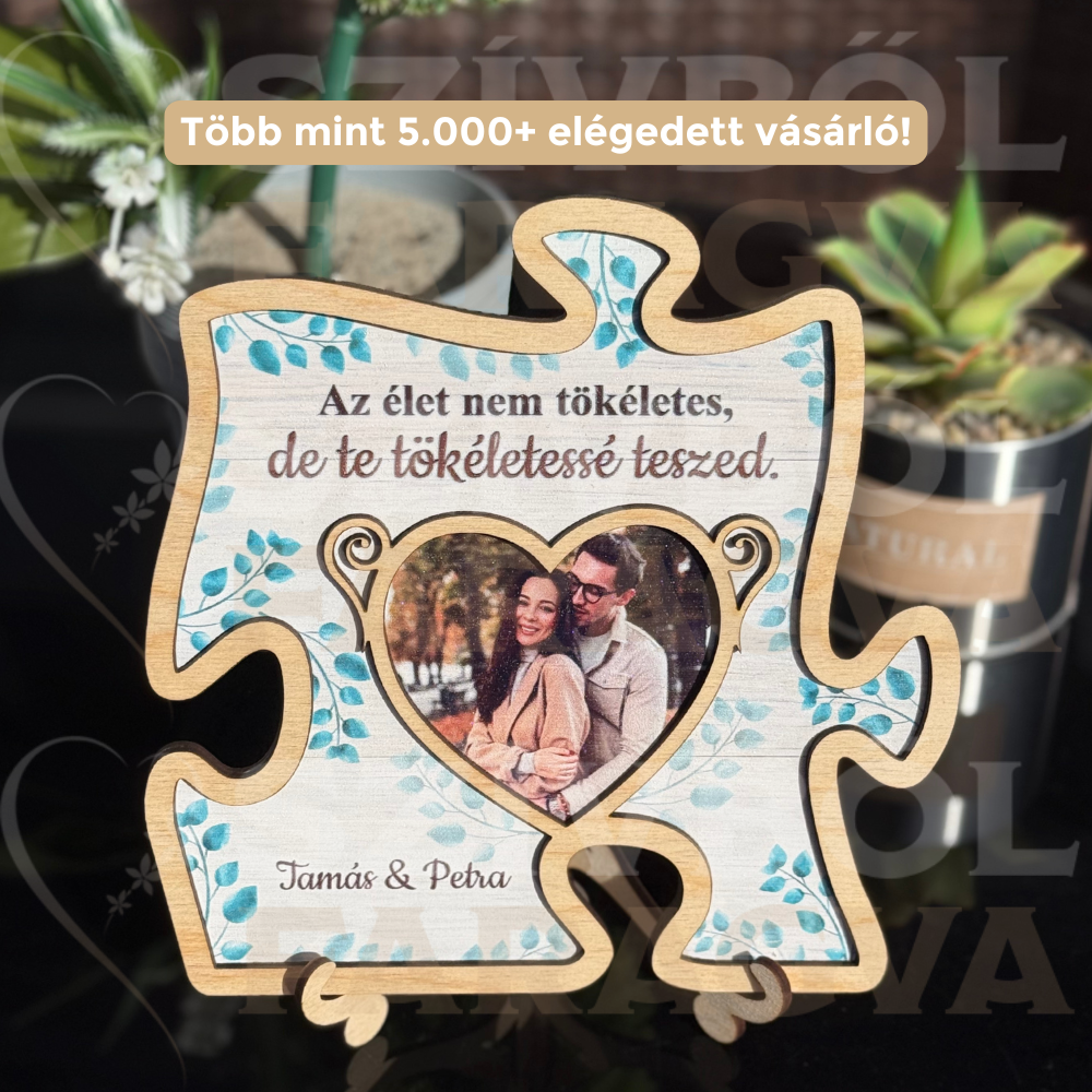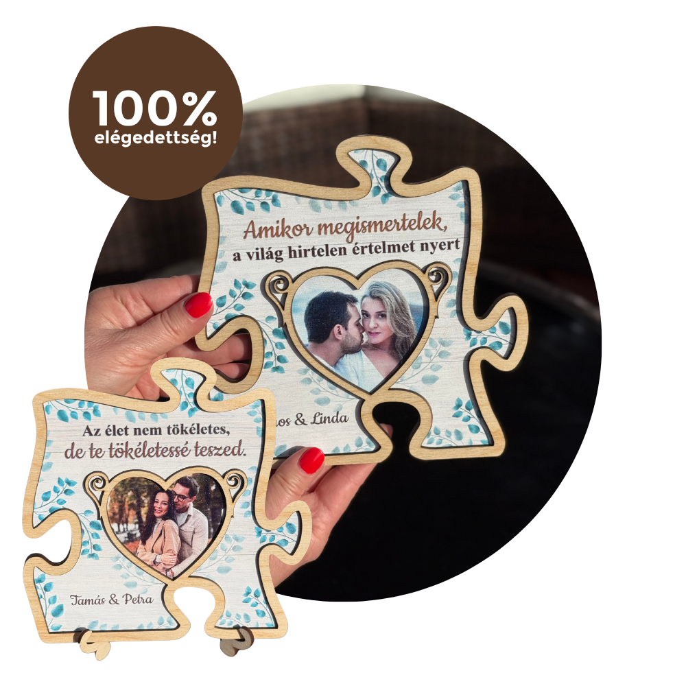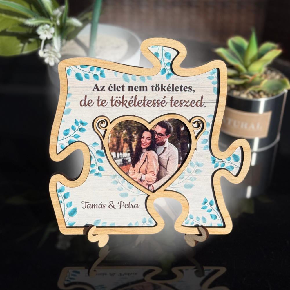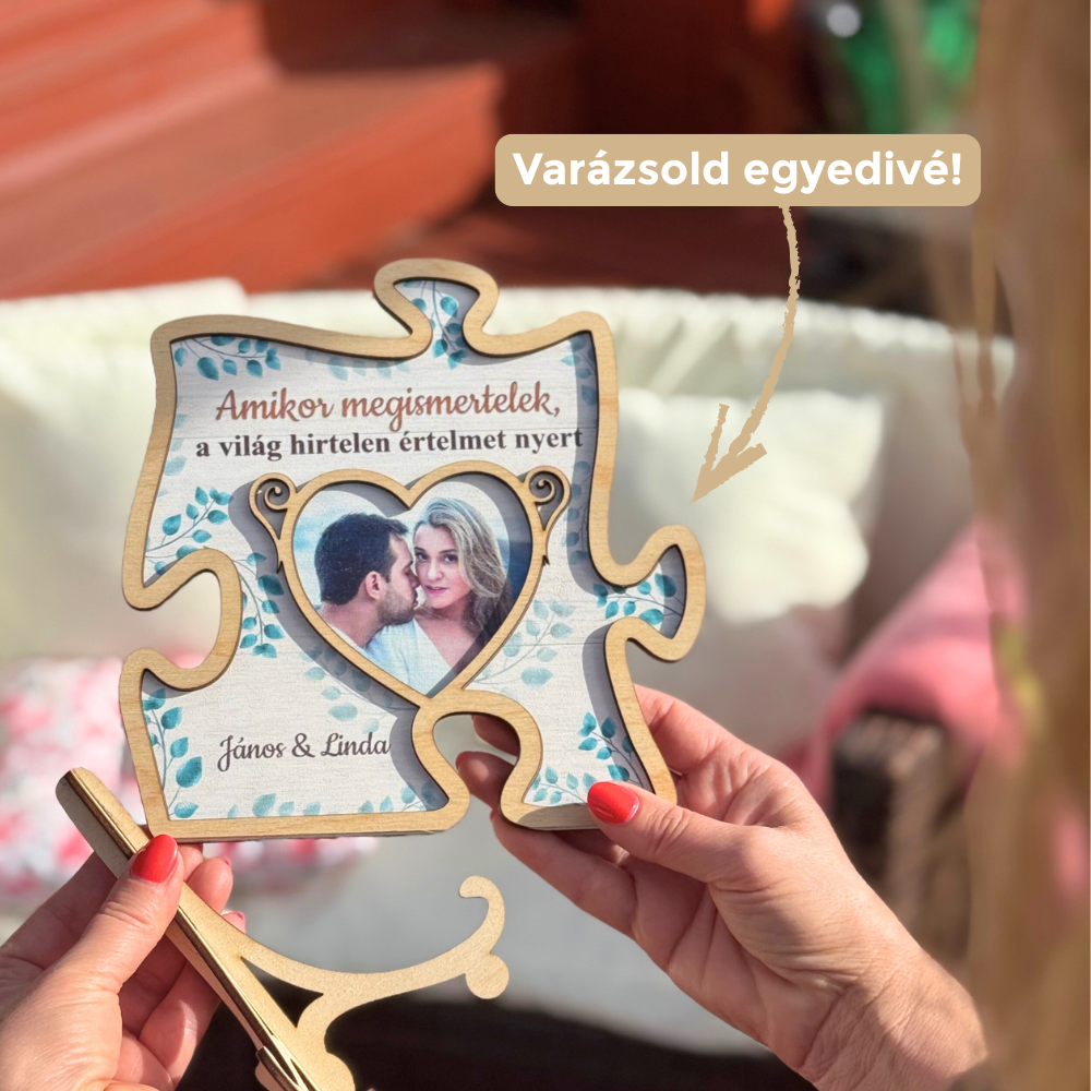 A puzzle szív különlegessége, hogy teljesen személyre szabható – te döntöd el, milyen nevek, dátumok vagy fotó kerüljön rá.