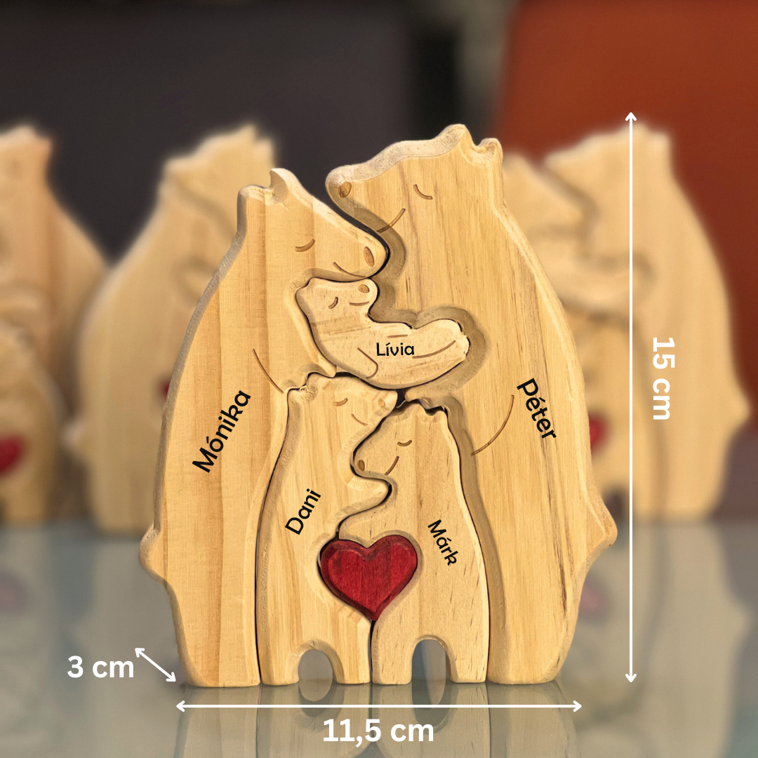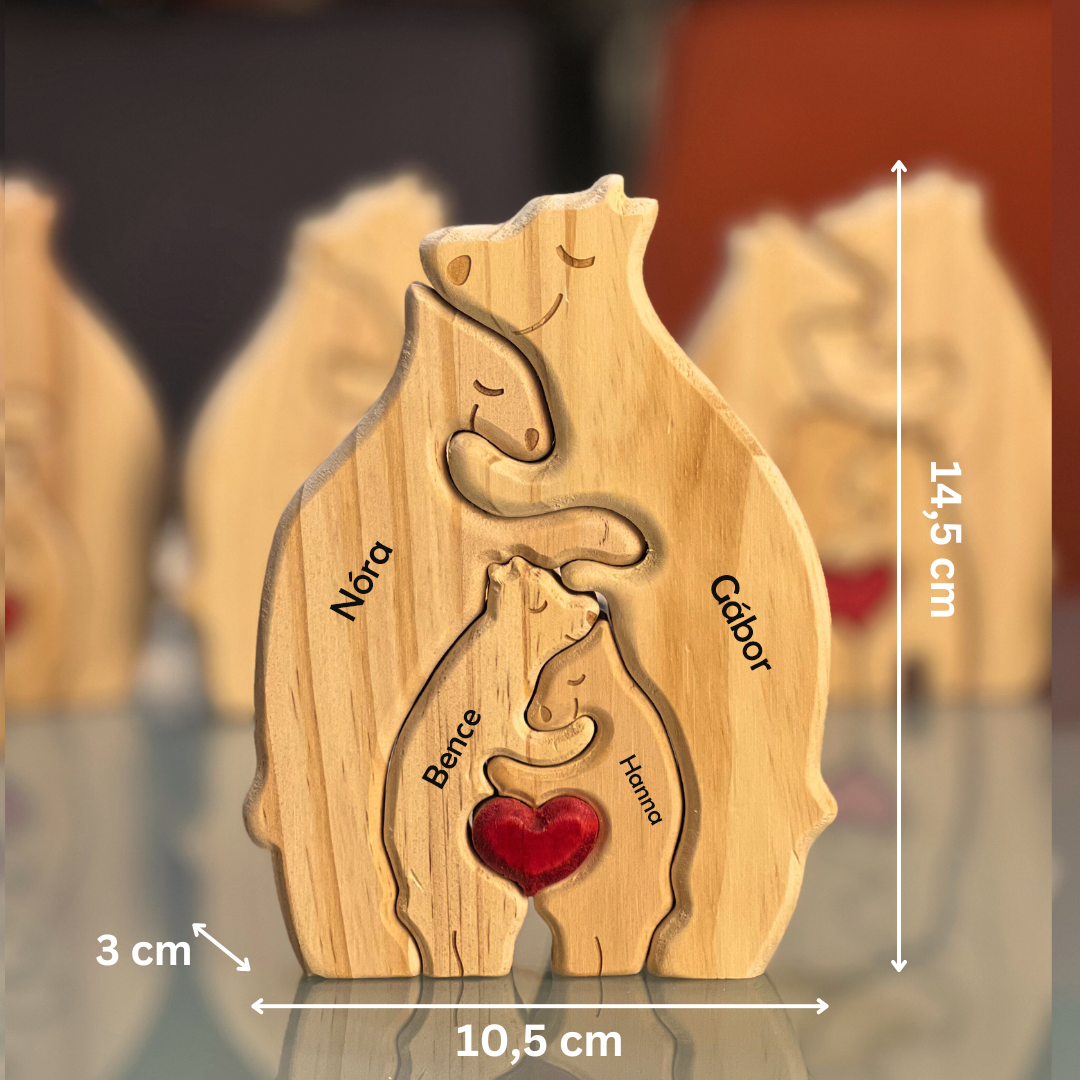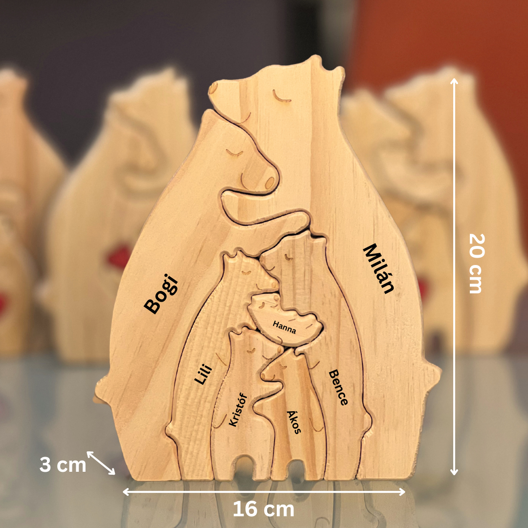 A fa maci család nem csak egy dísztárgy – hanem a szeretet és az összetartozás jelképe. Egyedi gravírozással készül, így minden darab teljesen személyre szabott, pont úgy, ahogy a családod.