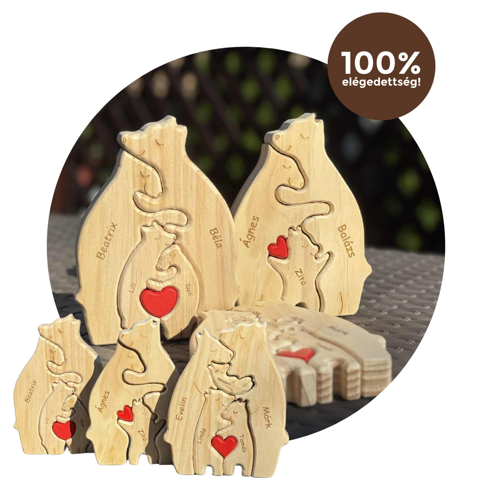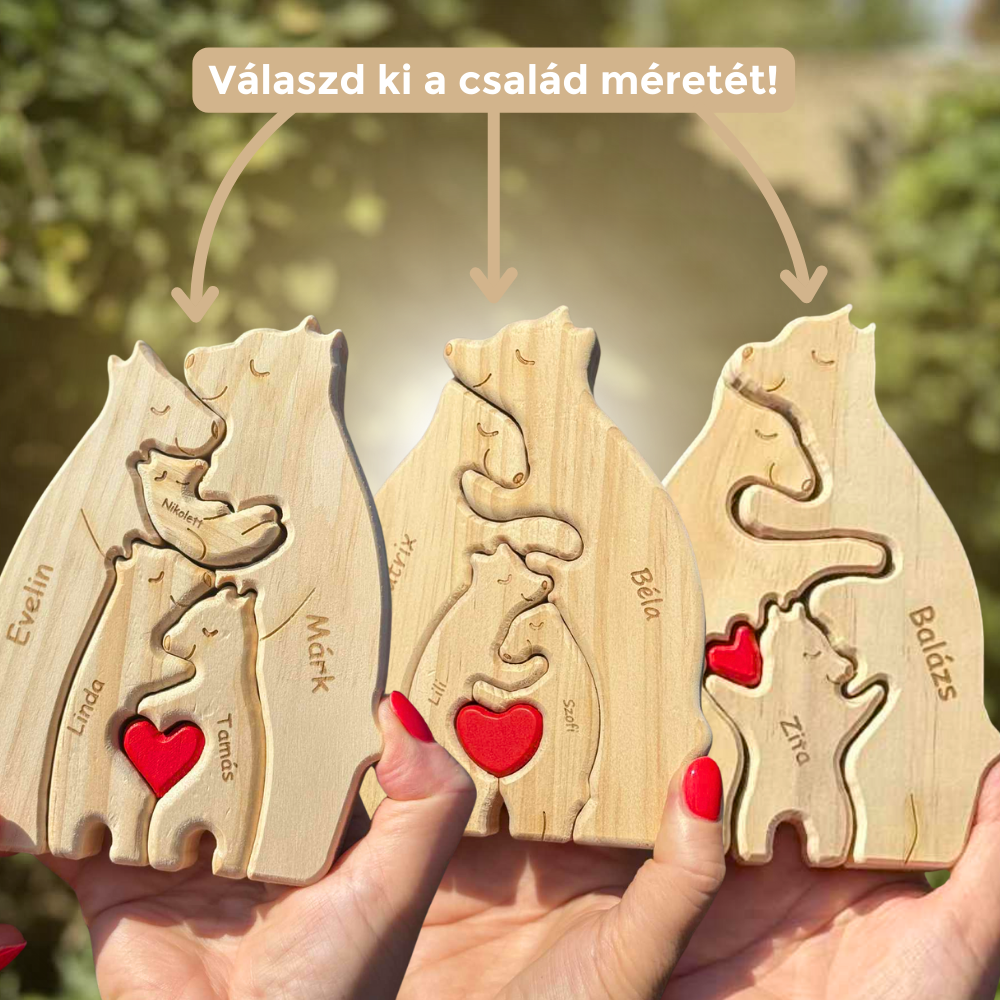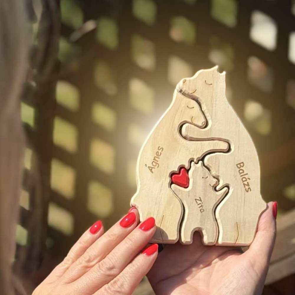 A fa maci család nem csak egy dísztárgy – hanem a szeretet és az összetartozás jelképe. Egyedi gravírozással készül, így minden darab teljesen személyre szabott, pont úgy, ahogy a családod.