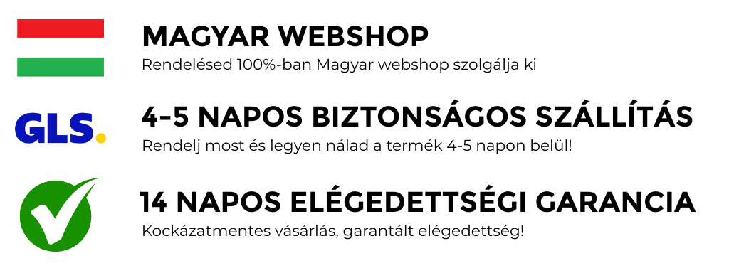 Nálunk a legfontosabb, hogy vásárlóink mindig elégedetten és biztonságban érezzék magukat. Ezért minden rendelésre 14 napos garanciát vállalunk.